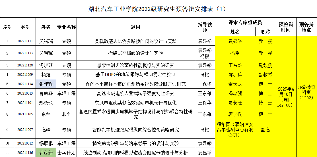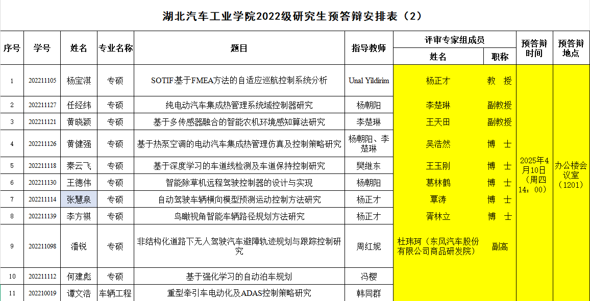 2022级研究生注意,以下是预答辩安排表,请各位同学悉知: