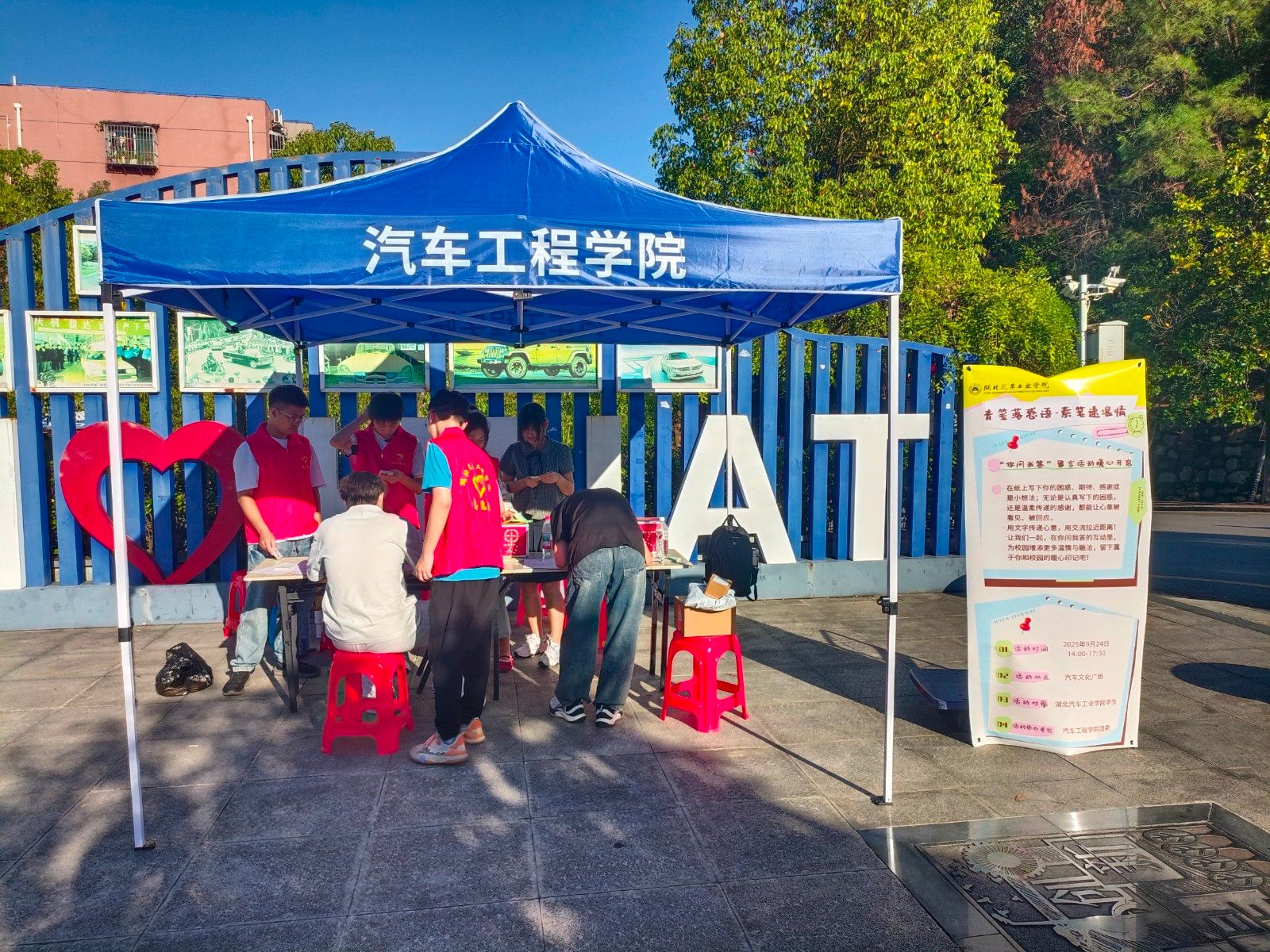 9月24日下午,必威唯一官方网站在汽车文化广场设置了“青笺书写区”“素笔答疑台”和“温情打卡墙”,为25级新生提供了一个倾诉与倾听的温暖空间。老生们以“过来人”身份解答学业规划、宿舍关系等困惑,活动累计回收问答卡百余份。