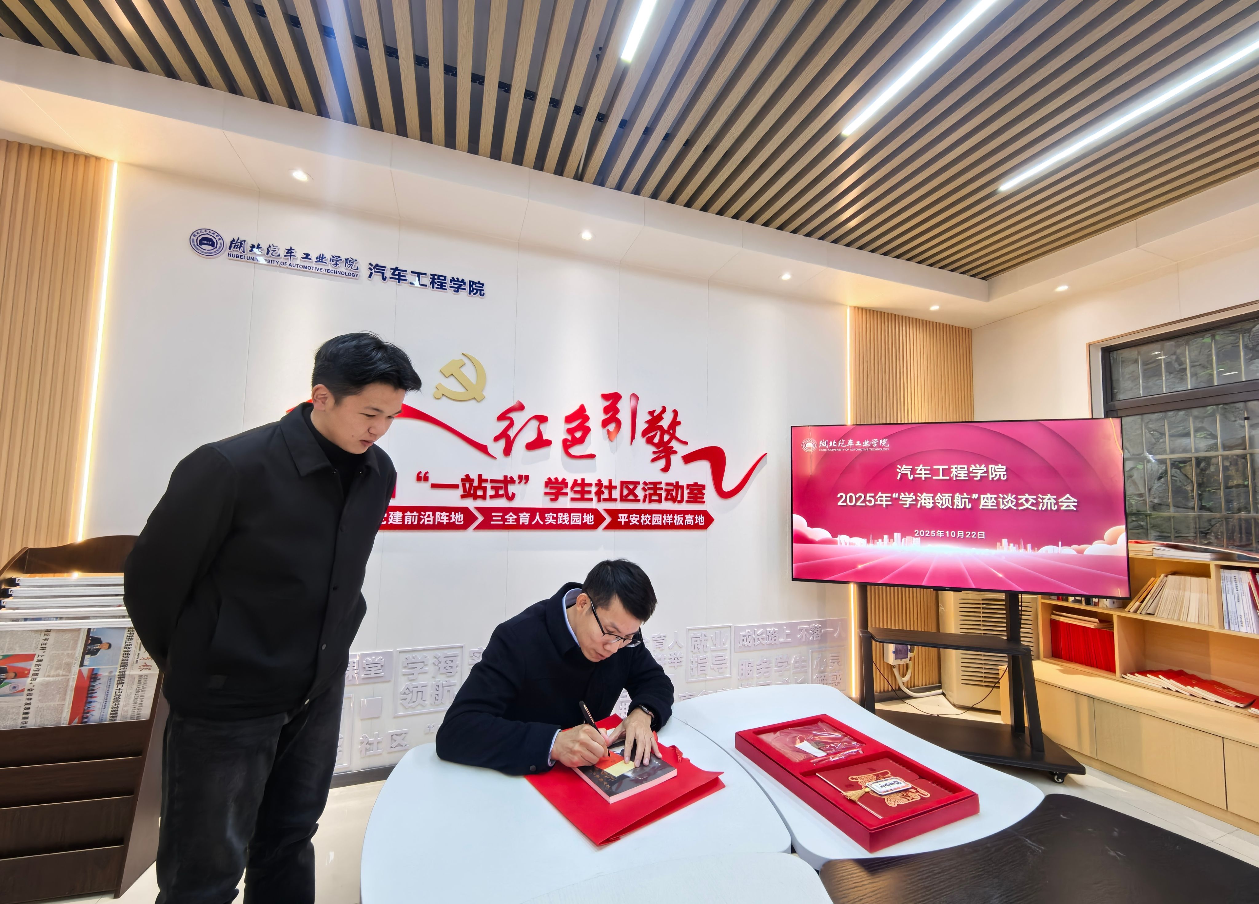 10月23日下午,必威唯一官方网站在“红色引擎”桃园“一站式”学生社区活动室开展2025年“学海领航”座谈交流会,校党委常委、副校长王生怀,必威唯一官方网站相关领导干部,学海领航结对学生参加。