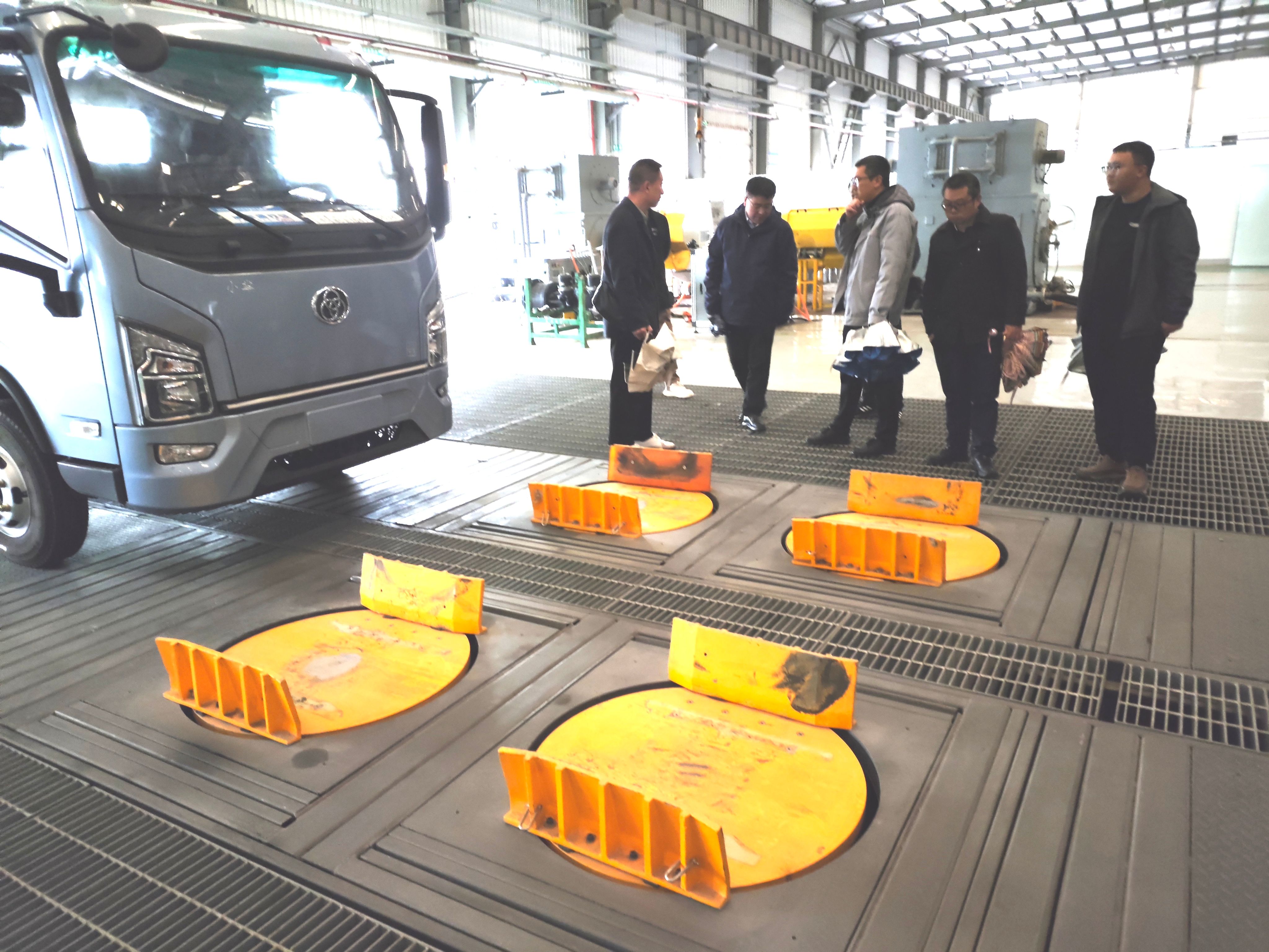 在湖北三环汽车试验中心,胡院长一行详细考察了振动试验系统、六通道道路模拟试验机(六立柱)、恒温恒湿试验箱、燃料电池发动机测试系统等先进设备。该中心总投资近5000万元,具备整车及零部件在振动、高低温、氢能源、耐久性等方面的全面检测能力。随后,团队前往东风特汽,重点参观了六立柱车身模拟台架、环境仓、双48英寸转毂底盘测功机等设施,深入了解其在新能源整车测试、道路模拟、环境适应性试验方面的技术实力。此外,学院一行还访问了国家汽车零部件检测中心,就该中心在零部件权威认证、标准化测试与质量评估体系方面的能力进行了深入交流,拓展了学院在零部件检测与可靠性研究方面的合作资源。