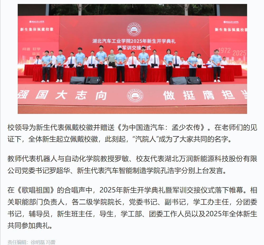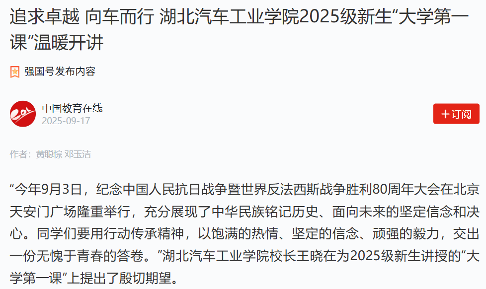 【中国教育在线】追求卓越 向车而行 必威betway中文官网2025级新生“大学第一课”温暖开讲