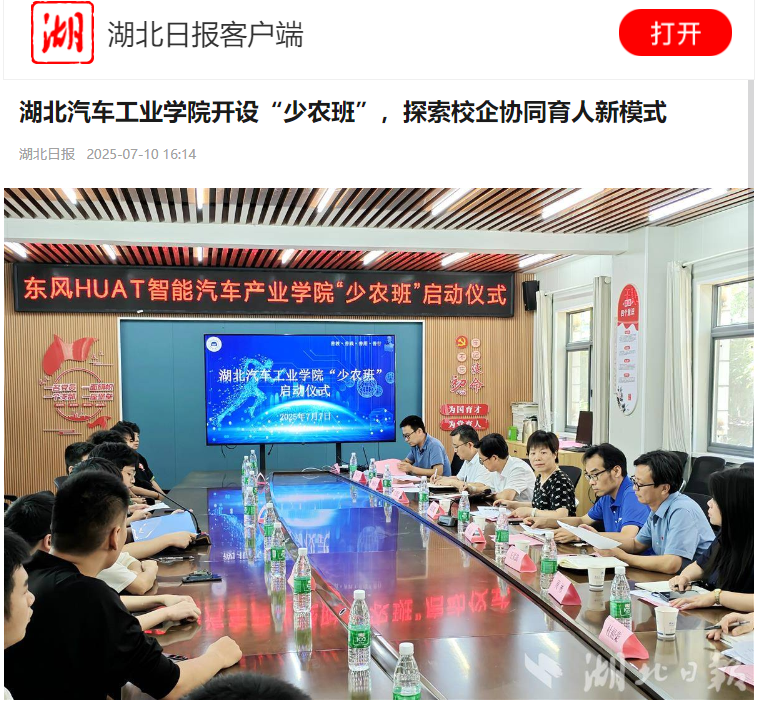 【荆楚网】湖北汽院设“少农班” 探索校企协同育人新模式