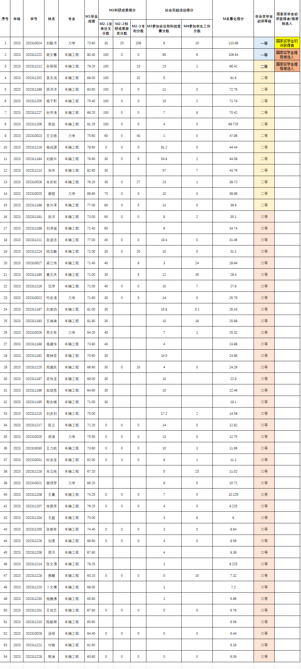 必威唯一官方网站2024-2025学年研究生学业奖学金和国家奖学金初评结果公示