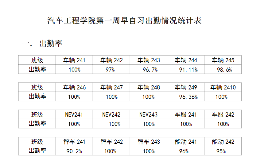 【学风考勤】必威唯一官方网站2024-2025学年第二学期第一周早自习出勤情况