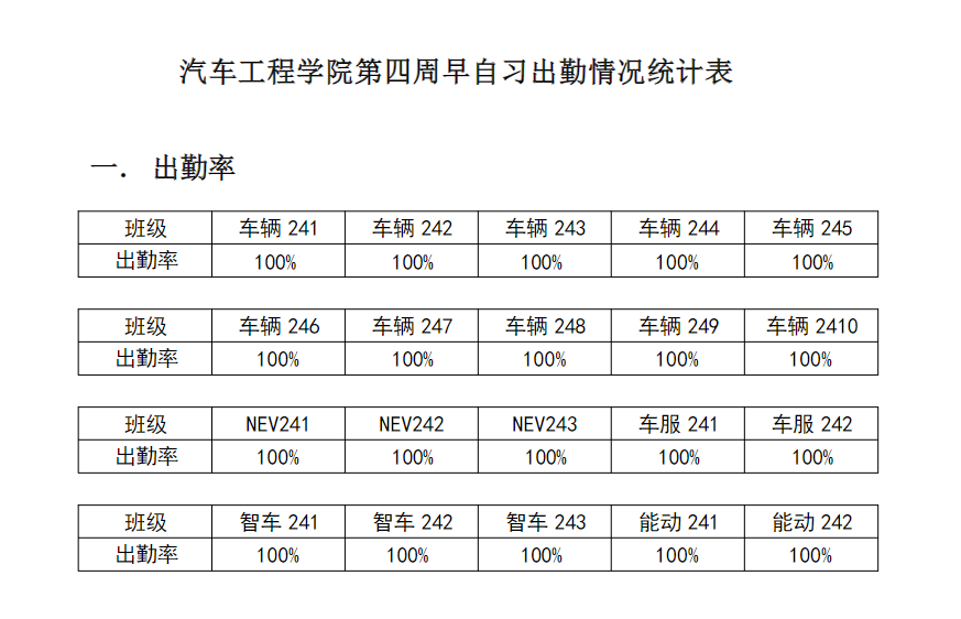 【学风考勤】必威唯一官方网站2024-2025学年第二学期第四周早自习出勤情况