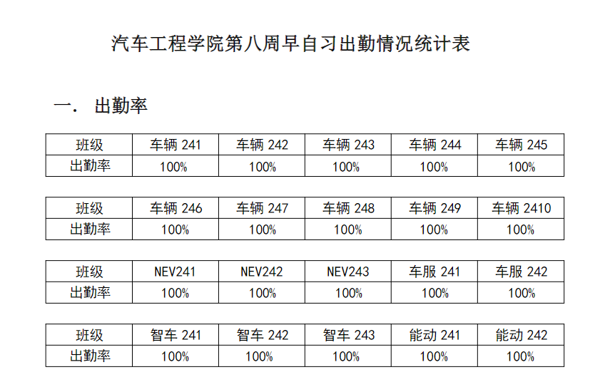 【学风考勤】必威唯一官方网站2024-2025学年第二学期第八周早自习出勤情况