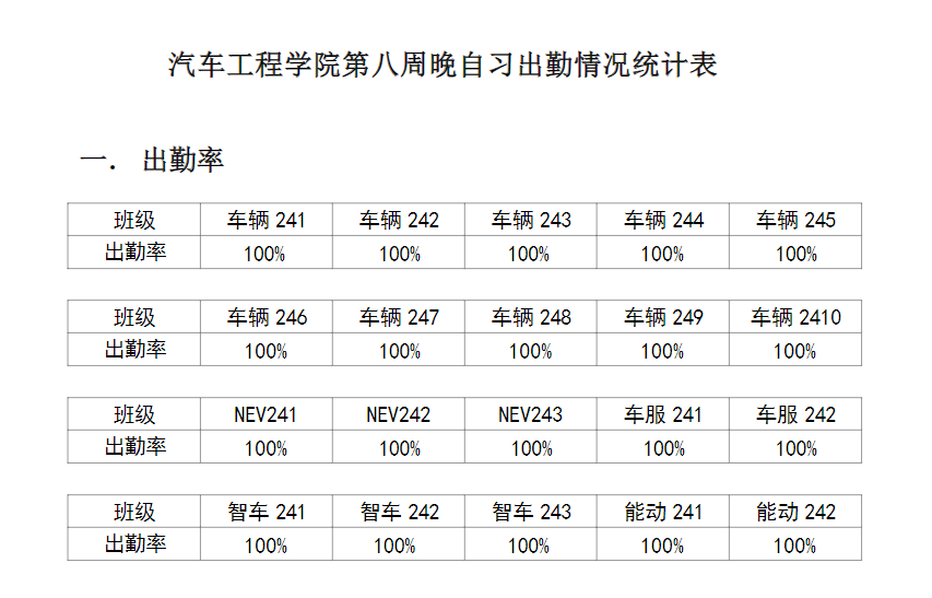 【学风考勤】必威唯一官方网站2024-2025学年第二学期第八周晚自习出勤情况