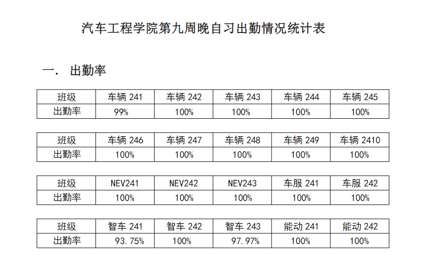 【学风考勤】必威唯一官方网站2024-2025学年第二学期第九周晚自习出勤情况