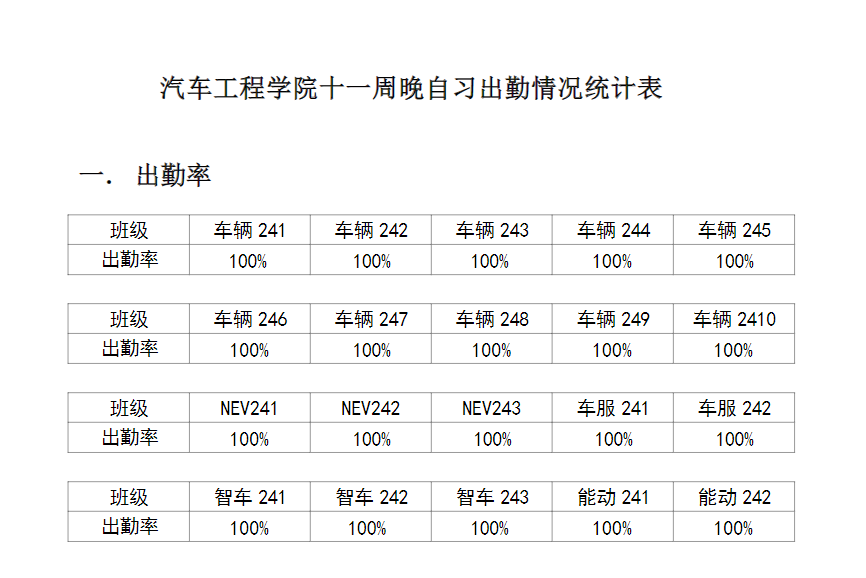 【学风考勤】必威唯一官方网站2024-2025学年第二学期第十一周晚自习出勤情况