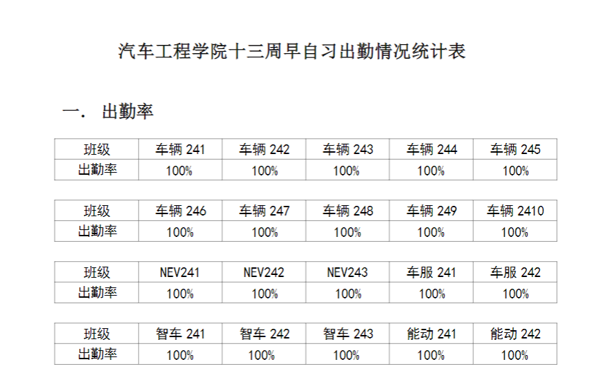 【学风考勤】必威唯一官方网站2024-2025学年第二学期第十三周早自习出勤情况