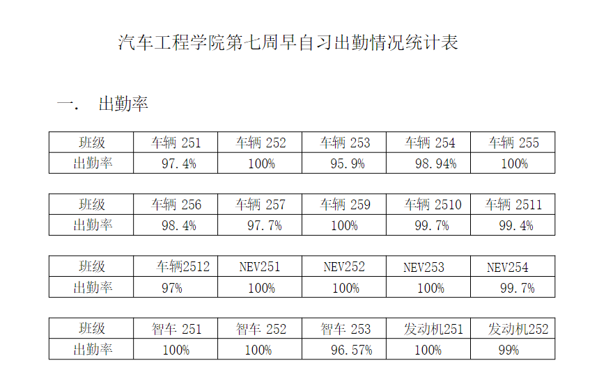 【学风考勤】必威唯一官方网站2025-2026学年第一学期第七周早自习出勤情况