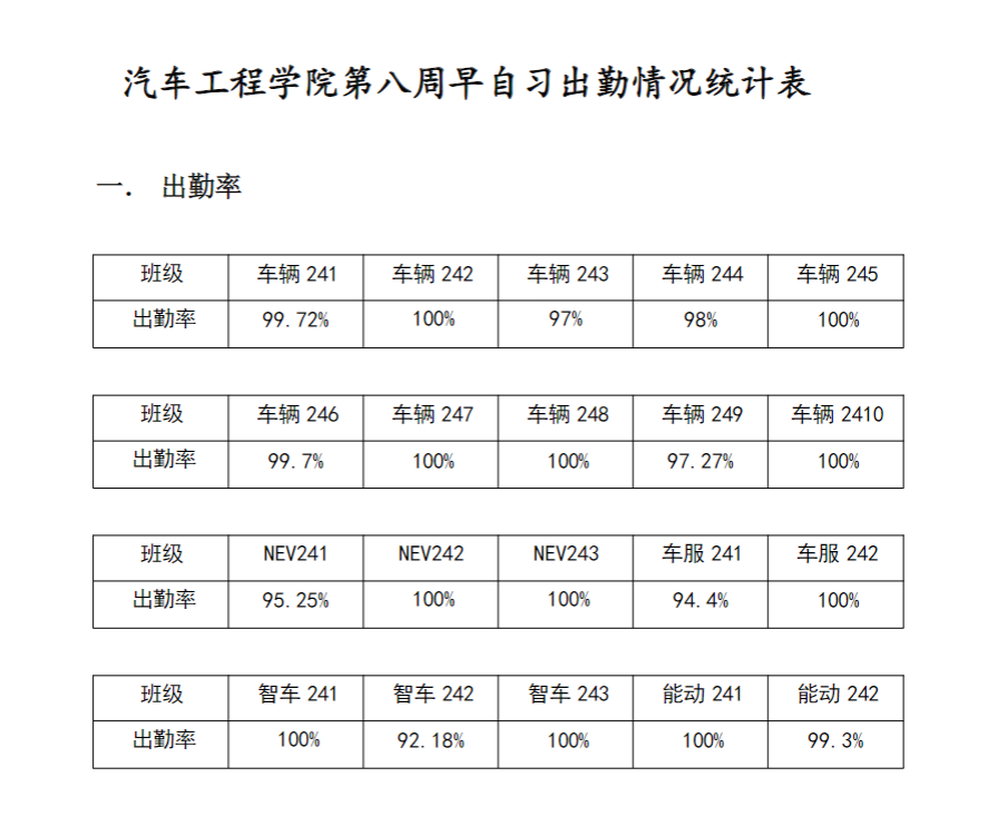 【学风考勤】必威唯一官方网站2024-2025学年第一学期第八周早自习出勤情况